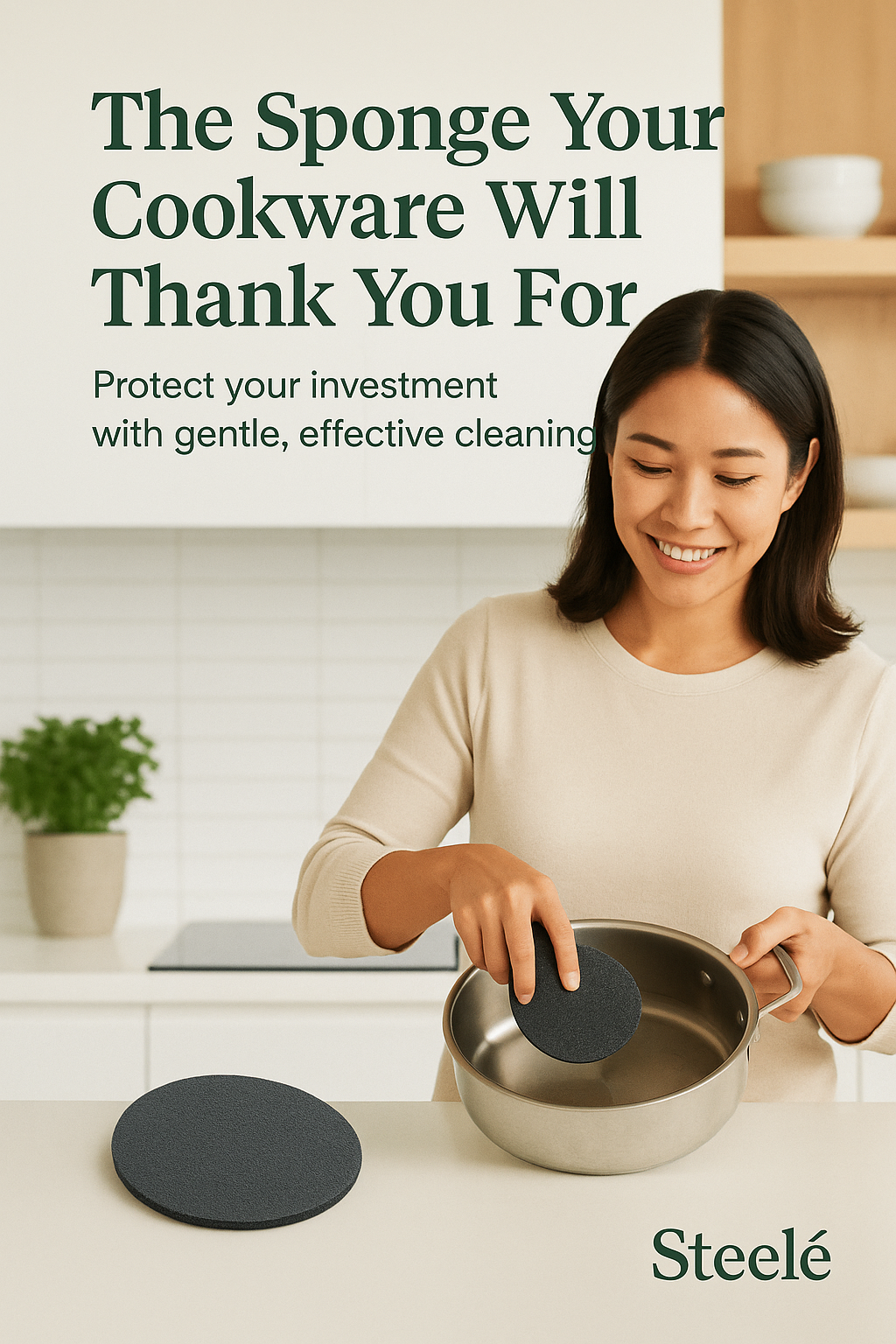 Restore your stainless pans in minutes. No chemicals. Stainless-safe. Made in Korea.