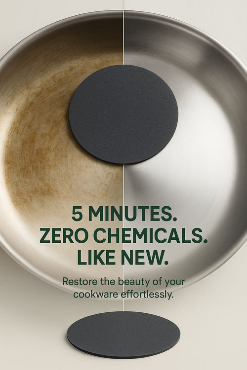 - CHEMICAL-FREE STAINLESS STEEL CLEANING: Lifts tough stains, burnt-on food, grease, and discoloration from stainless steel cookware using mineral abrasion — no harsh chemicals, no toxic fumes, no microplastics. A safer clean for health-conscious kitchens.